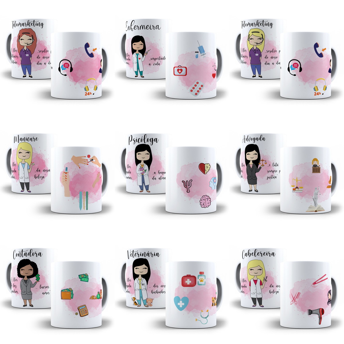 103 Artes para Caneca Profissões Feminina Editável em Corel Draw + Png