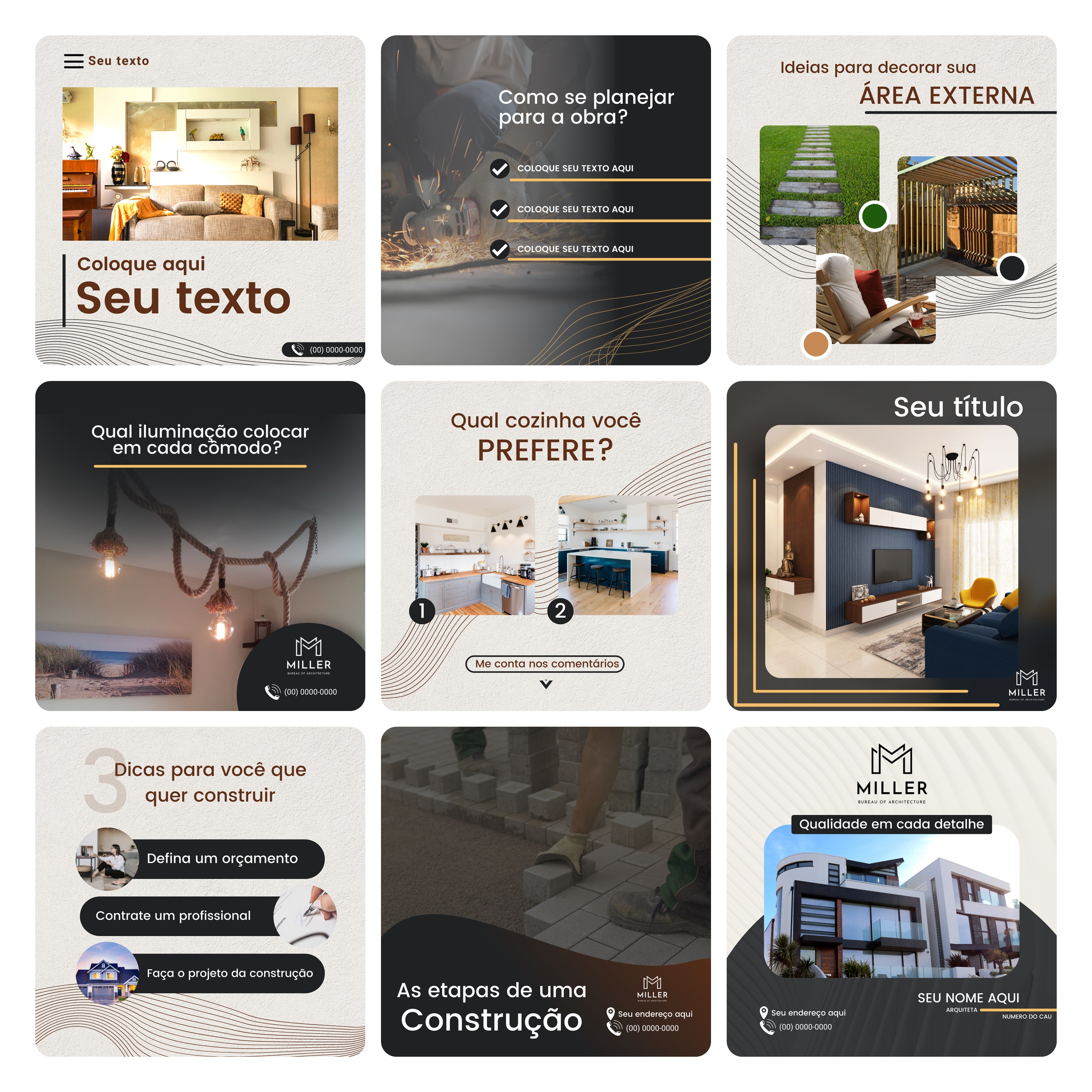Pack Canva Arquitetura Template Editável 30 Artes + Bônus